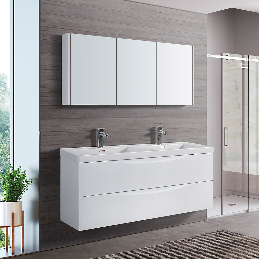 Pair badrumspaket har ett stort tvättställ med dubbla handfat som kan delas med dig och nära kära på morgonen. Badrumspaketets design är stilren och modern, med fokus på funktionalitet och bekvämlighet. Paketet har också en lika stor spegel som med tre luckor är väldigt rymlig och unik. Spegeln har en vit ytterkant på var sida med den tredelade spegelglaset i mitten. Tvättstället har två uttdragsbara lådor med mjukstängning och subtil handtagsdesign.